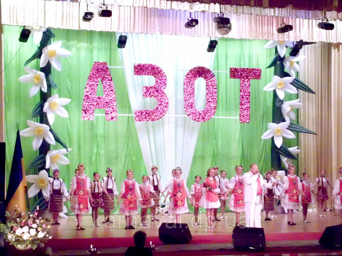 Оформлення сцени корпоративного концерту саморозпускними гірляндами надувними  квітів.